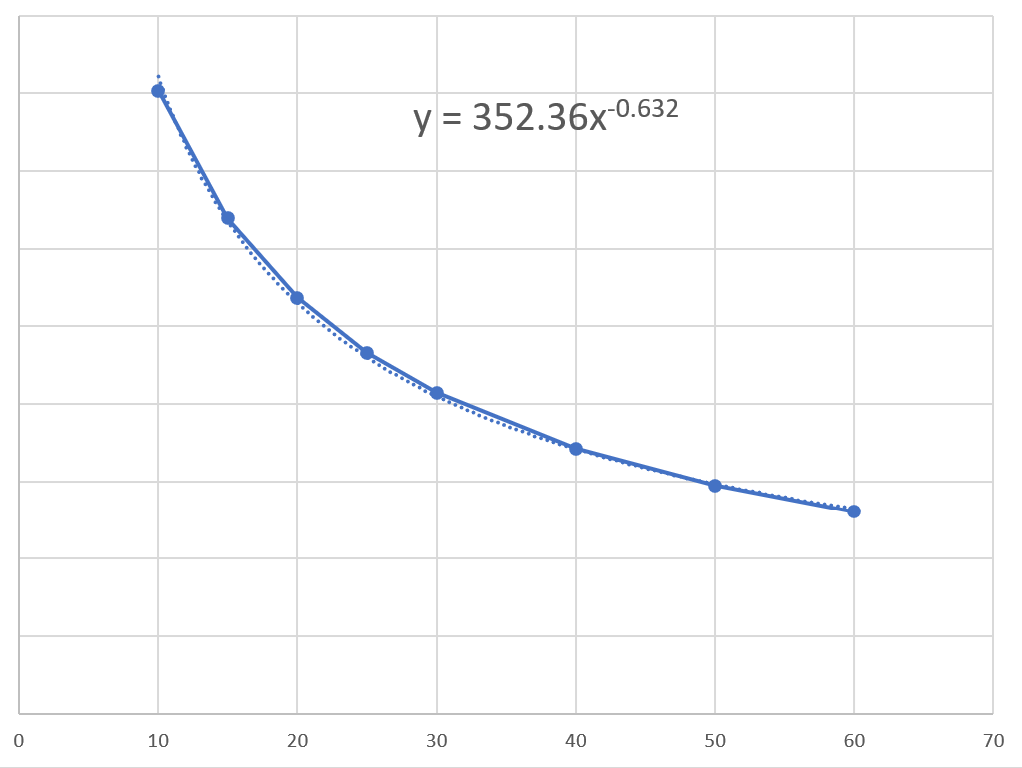 Y = 352.36/x^0.632
